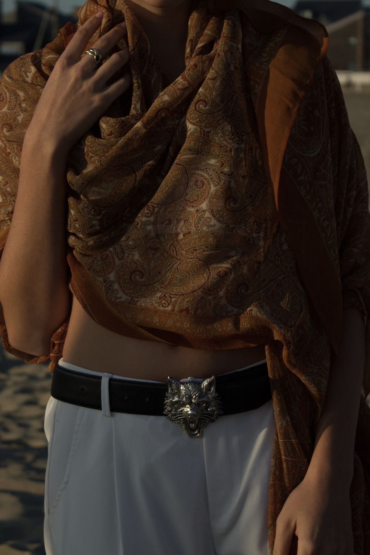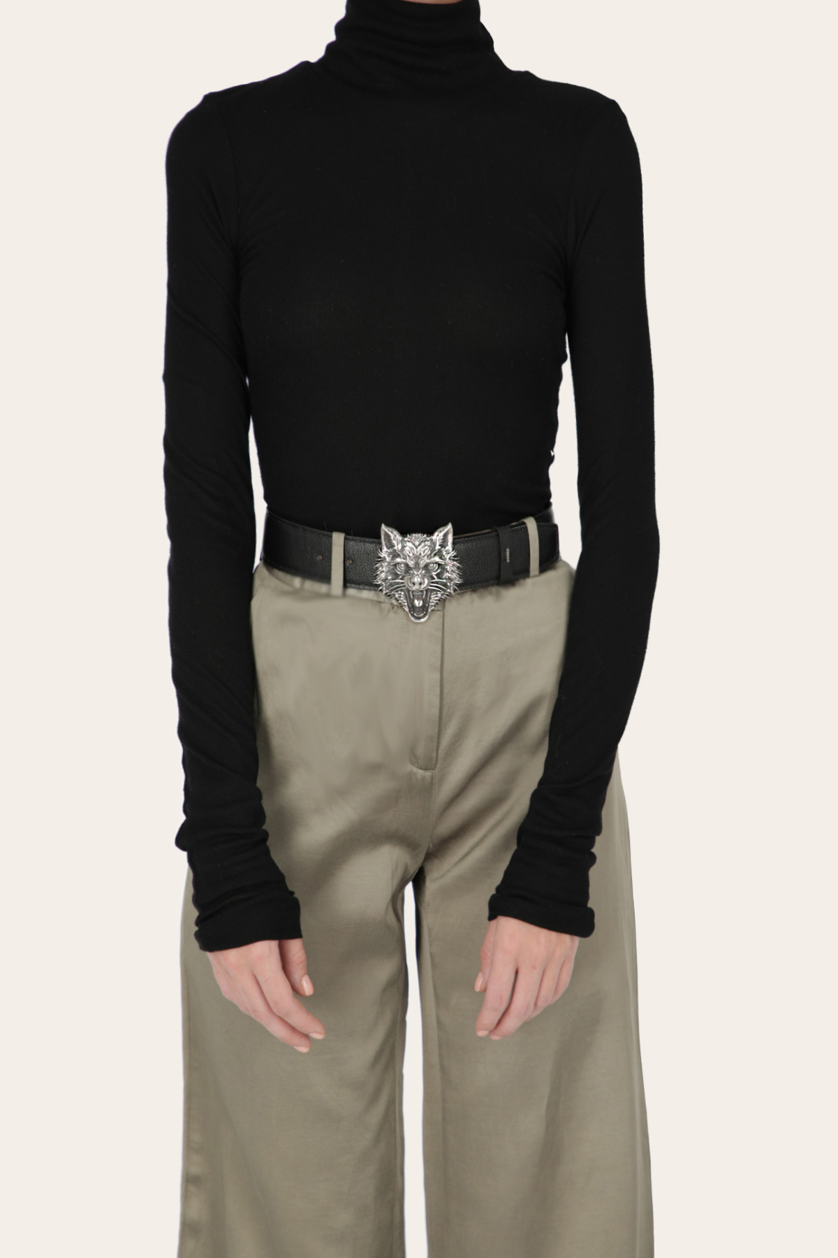 Handcrafted from solid sterling silver, this belt buckle captures the majestic essence of the wolf with exquisite detail. Each element, from the deep fur texture to the intense eyes, is sculpted with care, demonstrating traditional metalworking skills.